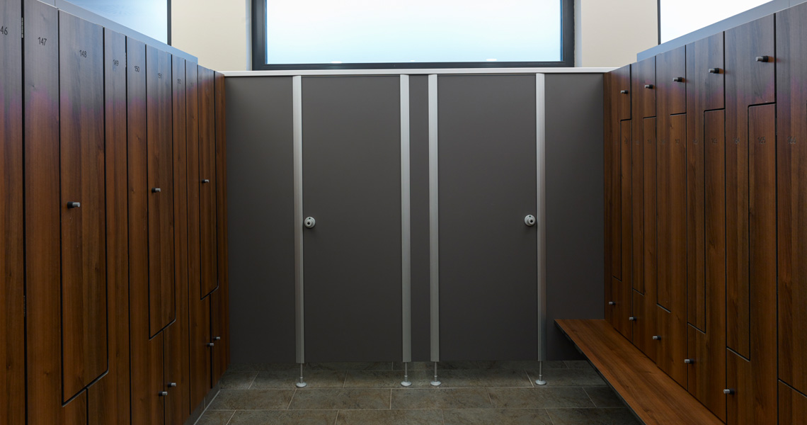 Sanitärtrennwände, Umkleidekabinen, Garderobenschränke, Frisierplätze, Einbauregale, Wertfächer