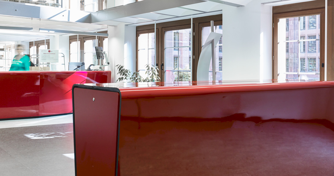 Infotheke, Ausleihtheke, Rückgabetheke, Wandverkleidung WC