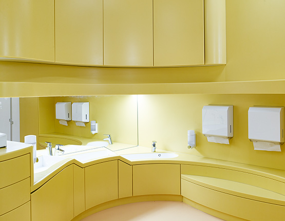 Waschtischanlagen, Innentüren, Einbauschränke, Wickeltische aus Mineralwerkstoff, Teeküchen, uvm.